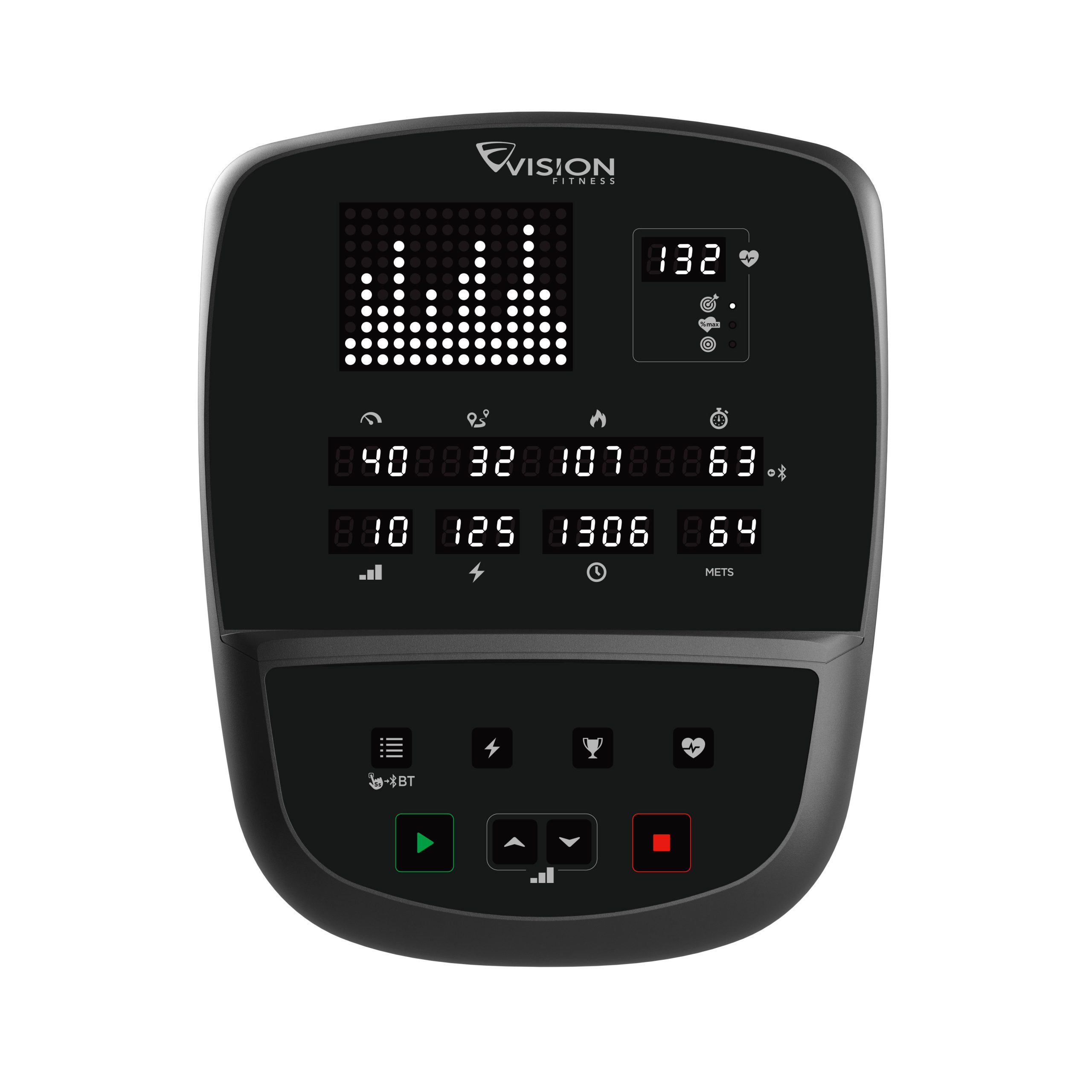 Display Type 10 x 14 white dot-matrix LED profile display, alphanumeric LEDs, dedicated HR zone display
